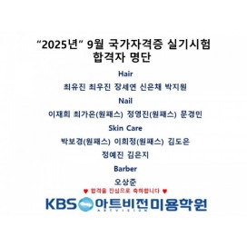 KBS아트비전미용학원의 자격증 합격자 명단 입니다.